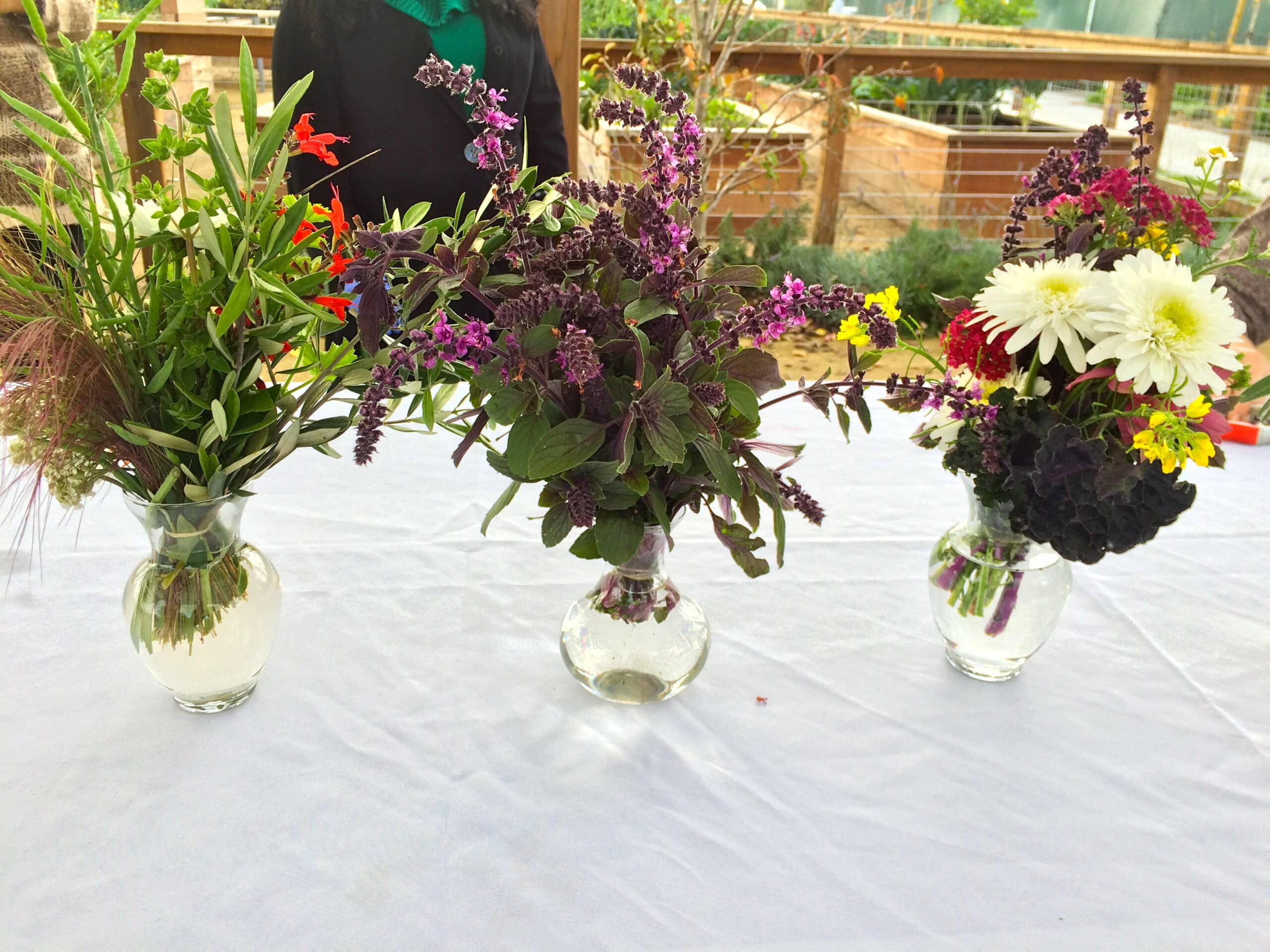 Thanks to everyone who attended the December’s DIG IT class! We had a Winter Gardening Q&A session with Mike the Gardener and Stefani Bittner, co-owner of Star Apple Edible Gardens. There were lots of great questions and we talked about winter harvests, tea plants, favorite cookbooks, and more! We also did a little day dreaming about what to plant in the spring and everyone went home with a bouquet of flowers from the garden, not to mention some beautiful veggies and herbs. In the picture below, spot the swiss chard, celery, collards, red russian kale, rainbow lacinato kale, snow peas, chervil, lavender, sweet marjoram, and edible nasturtium and calendula flowers!