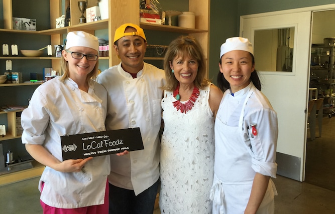 Congresswoman Speier spent a Saturday afternoon here at KitchenTown lunching with her inner circle, touring the kitchen, and meeting our makers. Chef Alberto prepared summer gazpacho and the fresh garden salad, Cocina Milongaoffered an array of empanadas and their amazing chimichuri sauce, everyone enjoyed Anna’s Danish Cookies for dessert and sampled Green Girl Ice Cream Sandwhiches – a huge hit! Here’s a pic of The Congresswoman with LoCal Foodz.She left with a weeks worth of their fitness inspired prepared meals.
