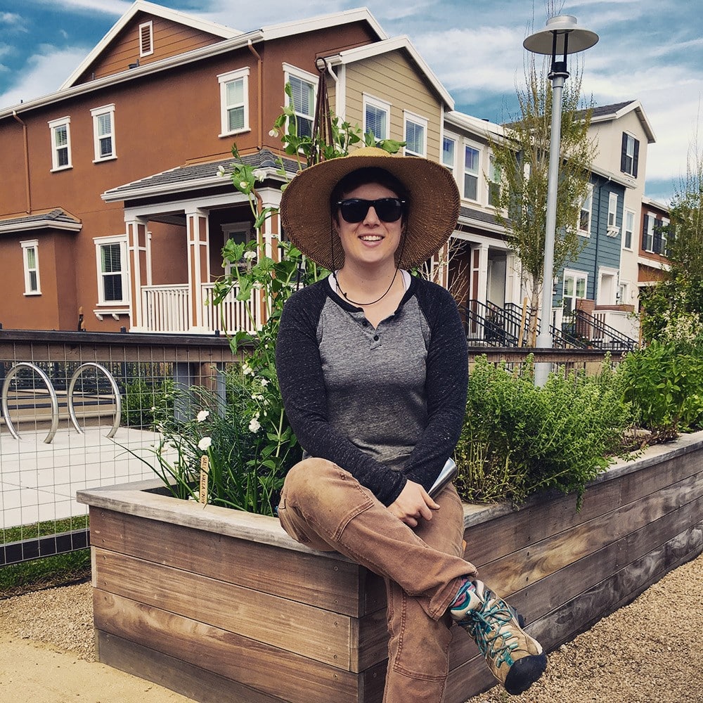 Meet Elisa Daus, our new resident gardener from Homestead Design Collective! Elisa is taking over for Mike who was recently promoted to Project Manager with Homestead. We are thrilled for Mike, as we all know it was a very well deserved promotion and we look forward to seeing him from time to time at our monthly Dig it Classes. Mike was amazing at getting the garden started at Bay Meadows and we are so thankful for his help over the past three years. Now, we are equally excited for the next chapter of the garden with Elisa and wanted to formally welcome her to our community!