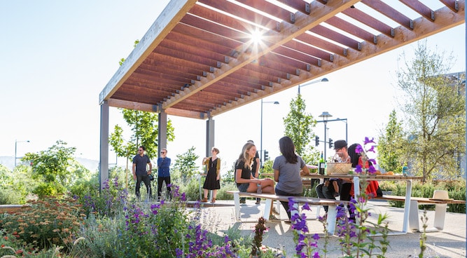 Outside the landscaped paths of Bay Meadows are perfect for a stroll or a bike ride, as well as easy access to the Hillsdale Caltrain Station. , you’ll be just a walk to nearby Delaware Street and the Town Square, which will boast boutique fitness, pop-up leisure options, stunning public art. With recent news of Blue Bottle Coffee and artisanal ice cream shop Tin Pot Creamery among the Bay Meadows’ first retail tenants, Bay Meadows will be among the hottest destinations on the Peninsula.