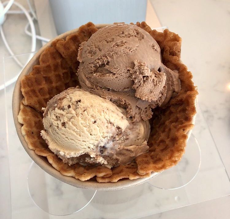 With Blue Bottle now joining Fieldwork Brewing Company and Tin Pot Creamery, some local residents are discovering their favorite products and go-to items. Julie’s son Jamie (pictured with Mom, above, left) recommends the mint-chocolate chip from Tin Pot, which “must be savored in a divine waffle cone,” says Julie.