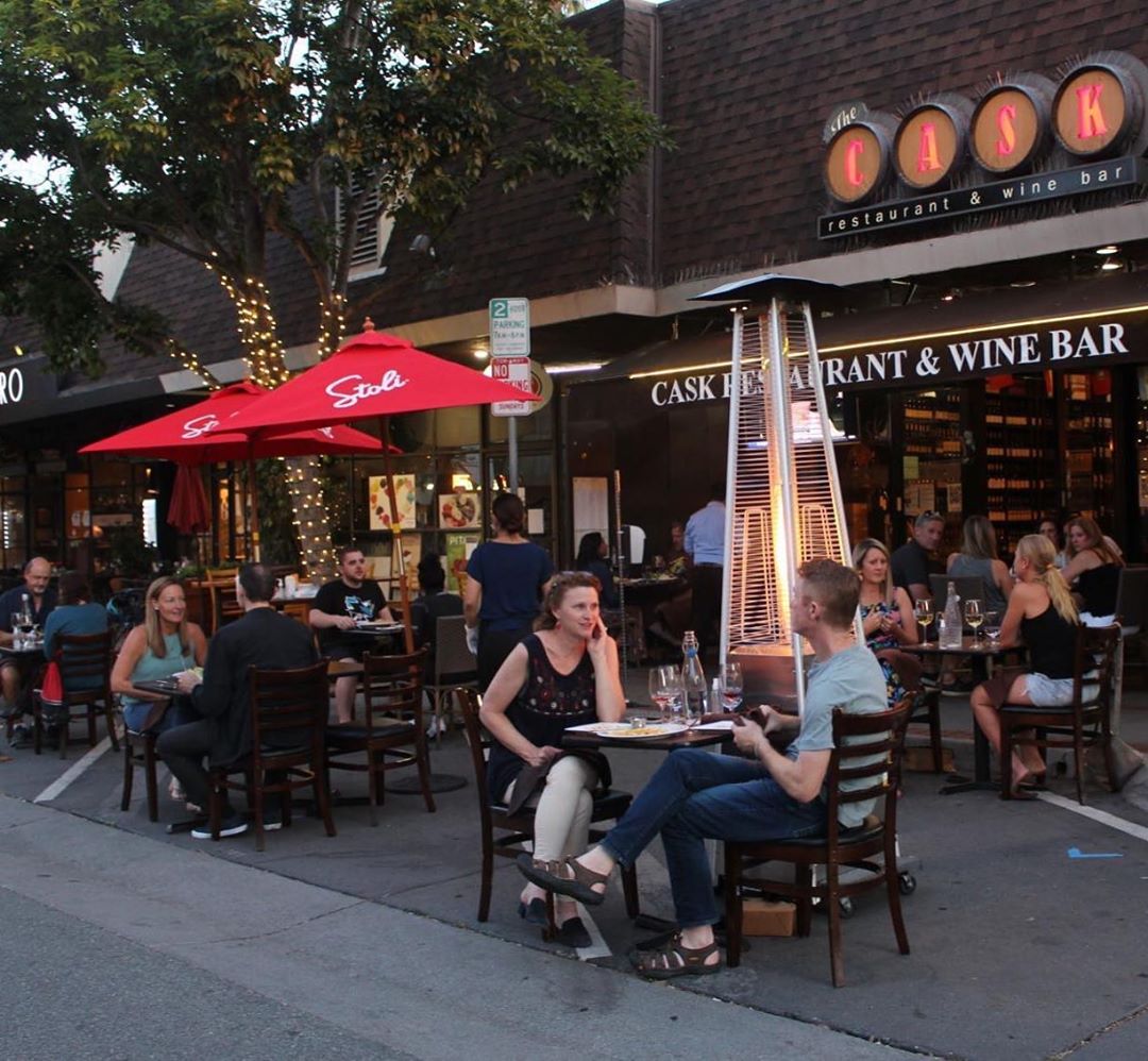 “Diners gather for an outdoor meal at The Cask Wine Bar, one of many restaurants participating in the Laurel Street closure program. The pilot program intended to assist business operations on Laurel Street and San Carlos Avenue has been met with a mix of praise and criticisms City of San Carlos officials are working to remedy.”
