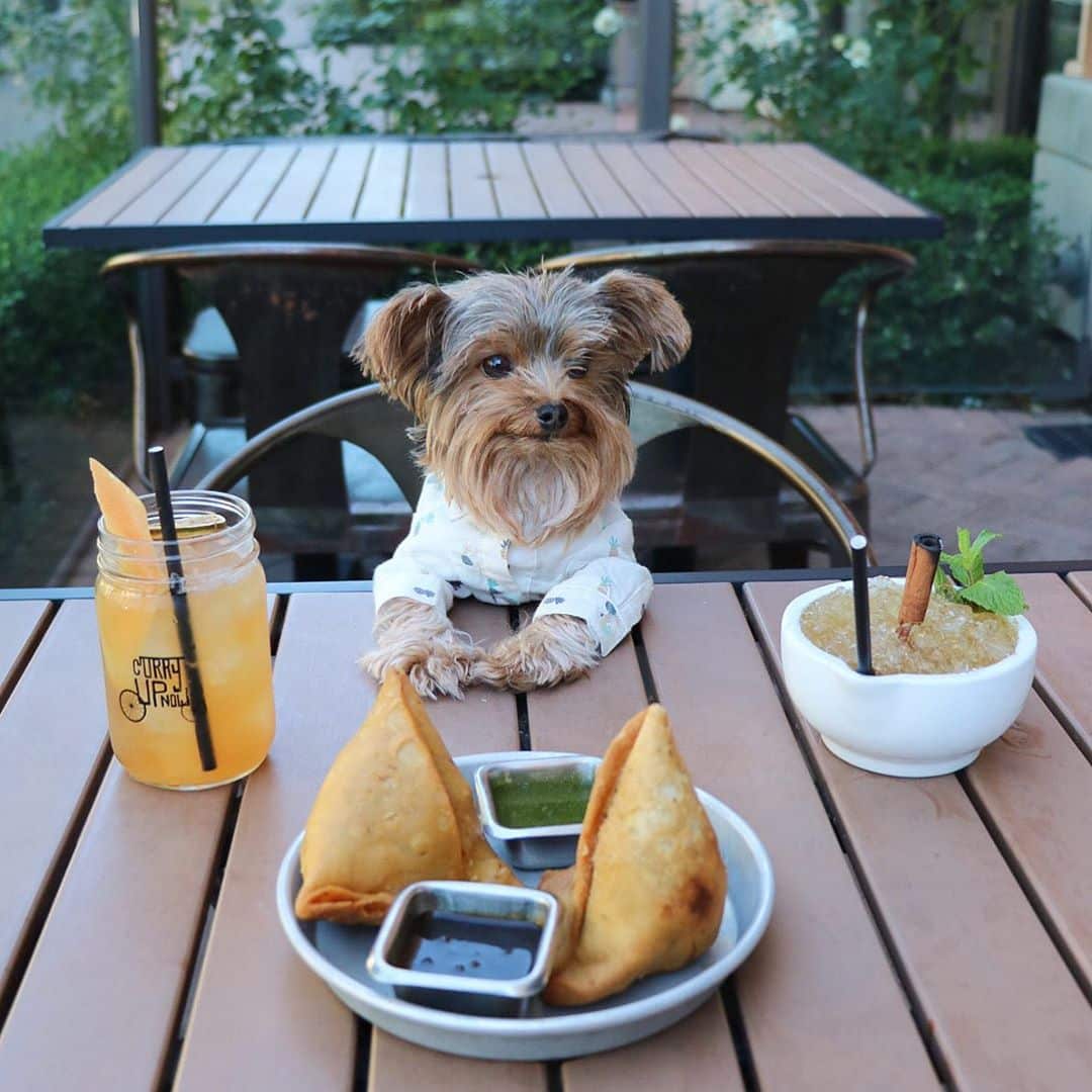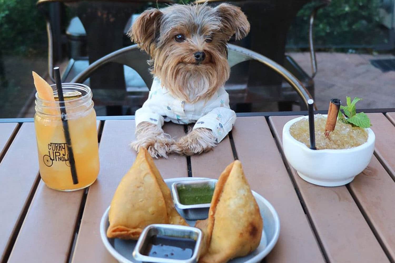 @napatheyorkie dines al fresco at the patio at Curry Up Now, thanks for sharing the pic – Napa!