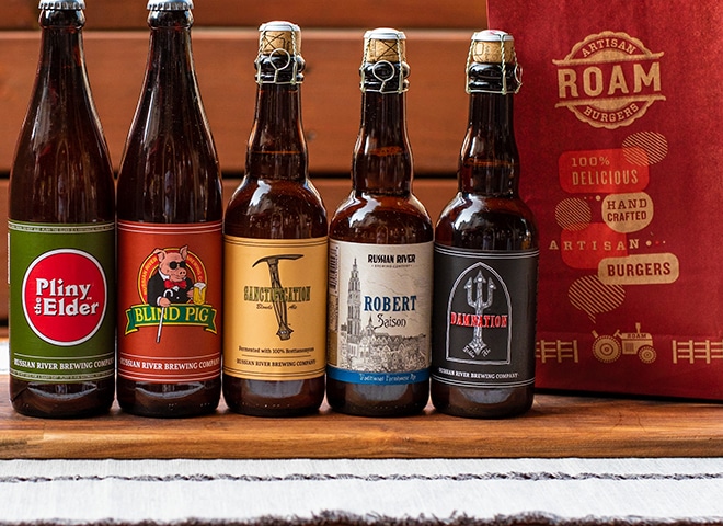 Russian River Brewing Bottles, photo credit ROAM Artisan Burgers