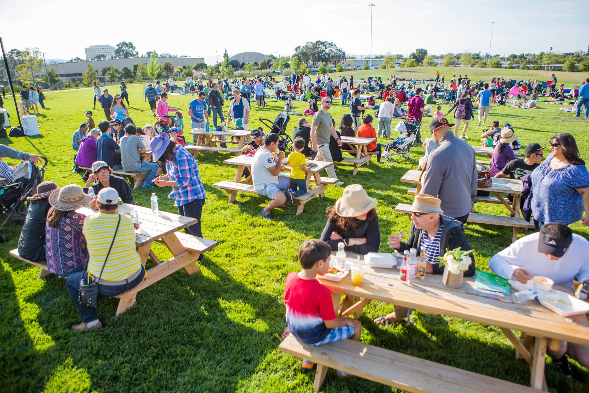 Back in the hey-day, Bay Meadows played host to the wildly successful Movies in the Meadow where hundreds gathered for the GOOD Night Market + food truck round-up and beer garden with a movie after-show in Bay Meadows Park just past sunset. Popular food trucks such as El Sur, Red Sauce Meatballs and Curry Up Now lined the park while craft brews flowed in the pop-up beer garden under string lights. Entertainment kicked off with DJ music and some on-theme movie karaoke challenges for prizes and food truck gift cards, while lawn games included Hoola Hoops, volleyball and cornhole. Das Bus also rolled in for a fun photo booth to capture the evening. Guests loaded up on uniquely flavored popcorns and some booked the premium “seats” which included front row blanket spreads set-up for arrival. Local Bay Area makers, creators and artisans hosted their wares in a long row of tents selling everything from picnic blankets and pup fashion to fresh floral arrangements and bouquets of freshly spun cotton candy from Sugar and Spun.
