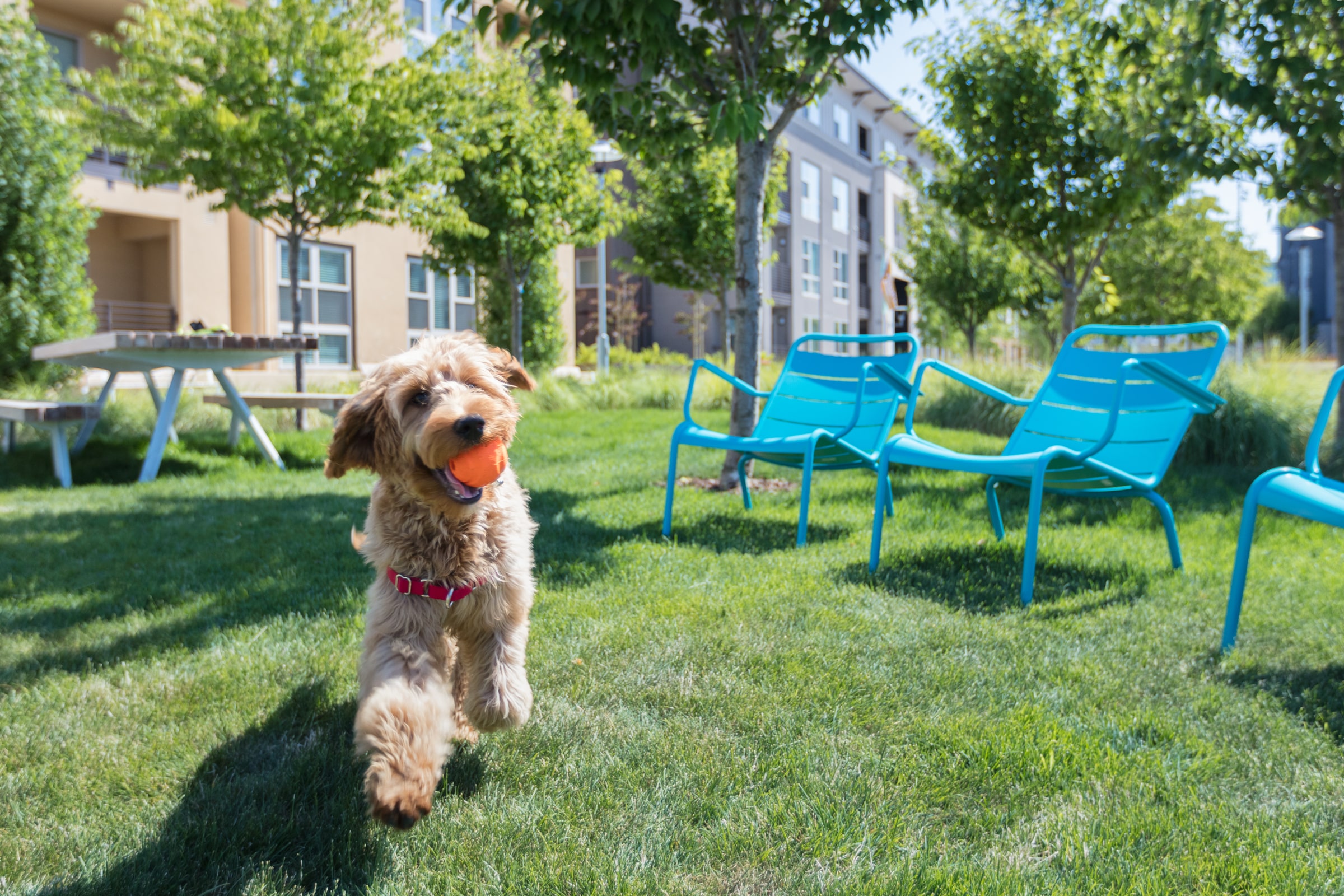 Hawthorne’s 2- and 3-bedroom residence plans include a limited-supply of single-level floor plans which are ideal (and extremely convenient) for pet-owners. In fact, the first-floor private entry patios have been a really popular design element for people with dogs. It’s a major convenience to be able to avoid long corridors, stairs, and elevators multiple times a day!