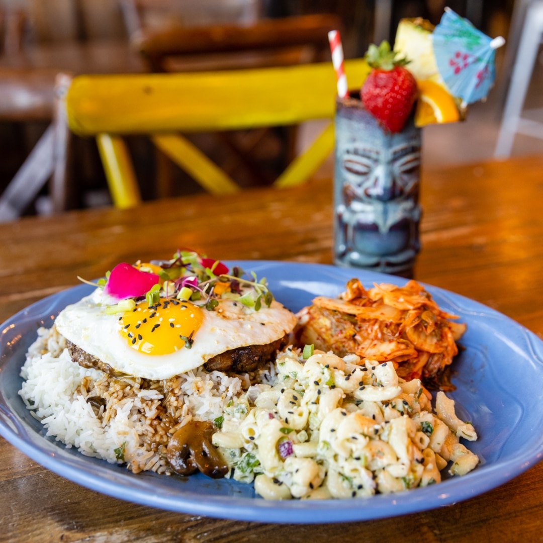 Step inside and you’ll feel the buzz. The space hums with upbeat DJ sets, the clink of coffee mugs, and the shimmer of cocktails complete with playful paper parasols. Equal parts lively and laid-back, it’s the kind of spot where brunch turns into an afternoon hangout before shopping at Hillsdale Shopping Center, spinning the wheel at Clayroom San Mateo, or catching a soccer match at Bay Meadows Park. From Loco Moco and Breakfast Chow Mein to Eggs Benedict, Brioche French Toast, and Chilaquiles, the menu is a feast for both sweet and savory tastes — perfect for a casual date, a family outing, or a solo brunch at the bar mingling with other locals.