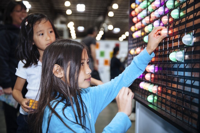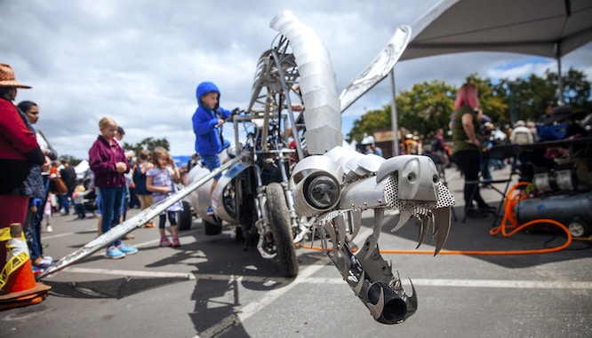 Maker Faire showcases the innovative, creative, and ingenious projects of over 1,300 inspirational Makers. Making enthusiasts take in projects including kinetic art, robotics, fire art, drones, food making, microelectronics, music, and more.