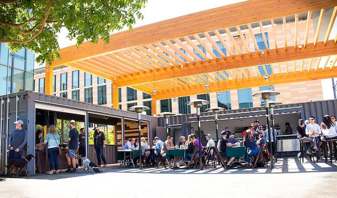 Gather, toast, and enjoy with a sampler flight, beer by the glass, and fresh beer filled “to go” in growlers and Crowler cans! The venue also features 2 fire pits and Bocce Ball (first-come first-served). Explore Bay Meadows’ Town Square where you’ll also find Tin Pot Creamery!
